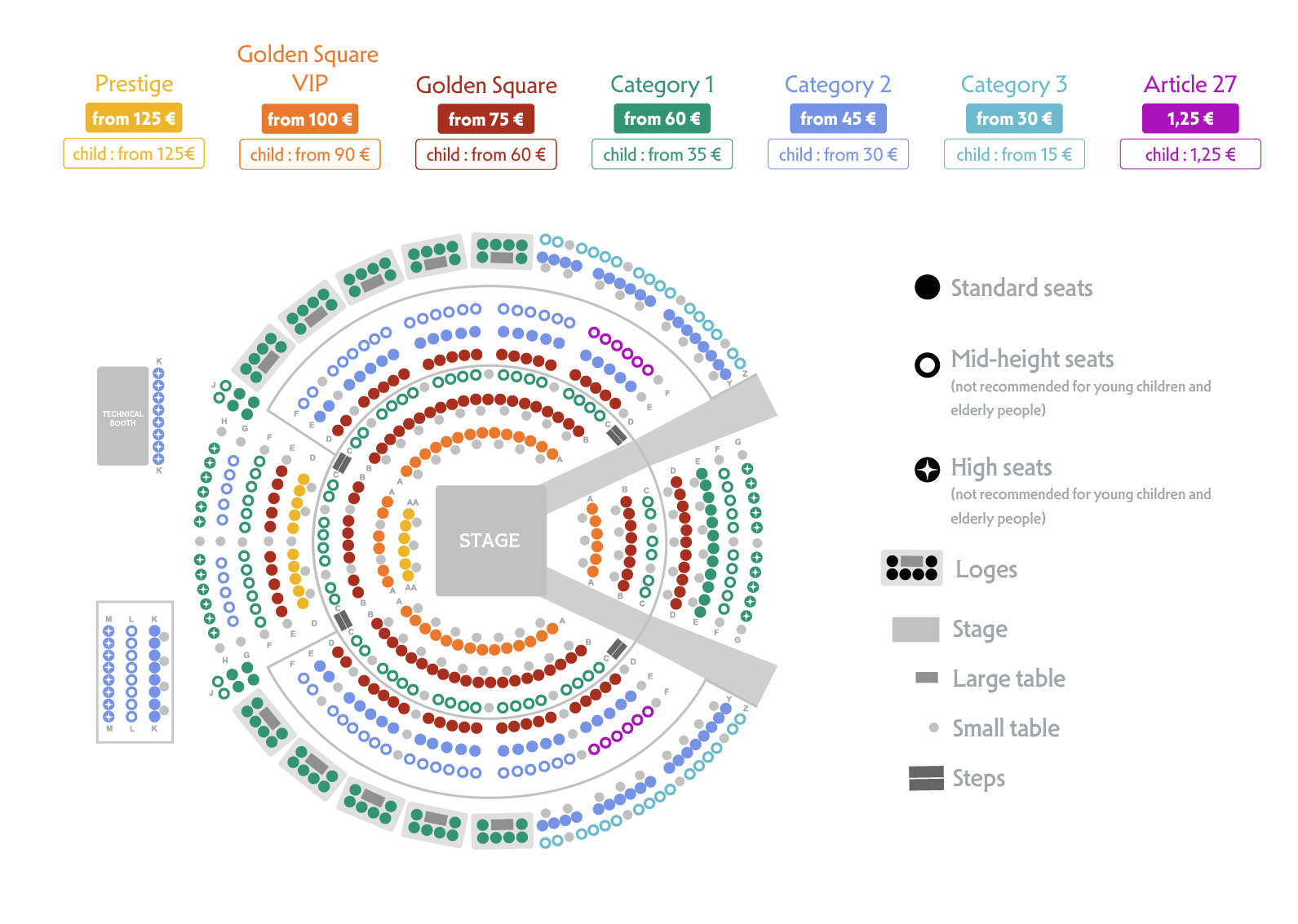 Tickets are sold with numbered seating, according to the layout shown below. Upon arrival, our welcome team will guide you to your assigned seat.